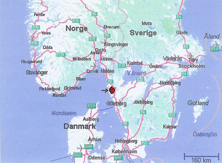 - Som ni ser på kartan till höger så har vi väldigt nära till både Norge och Danmark. Det gör att vi ställt ut våra hundar en hel del i dessa länder under årens lopp och att många av våra valpar är sålda dit.